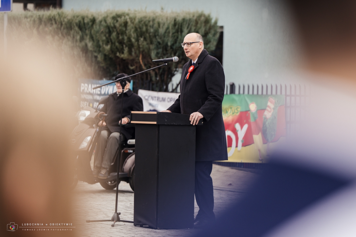 Następnie głos zabrał Wójt Gminy Lubochnia — Piotr Majchrowski, który w swoim przemówieniu nawiązał do historii, patriotyzmu oraz roli lokalnej wspólnoty.